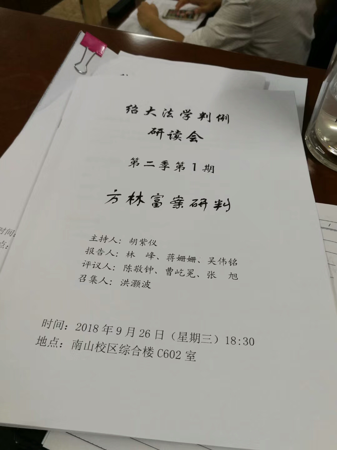 9月26日晚18点30分,绍大法学判例研读会第二季第一期在综合楼C602准时举行。参加此次研读会的同学十分热情积极,报告人和评议人表现的也十分出彩,研读会举办的非常成功。