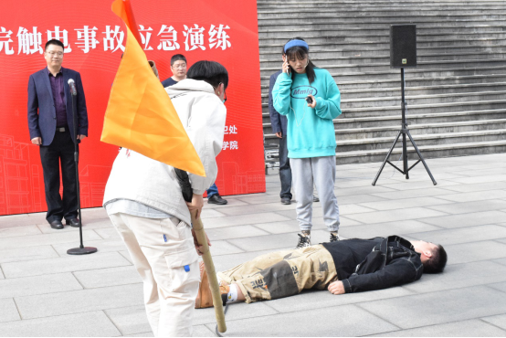 为检验我校编制的安全演练应急预案的可行性,同时提高学院师生处置触电事故事件能力。11月17日下午,永利官网在河西校区体育馆广场组织开展触电事故应急演练。副校长、党委委员陈均土,校党委委员、党委组织部部长宣绍龙,研工部部长、研究生处处长令狐文生,校保卫处处长金列华,校后勤管理处处长潘华泉,校党办校办副主任王勇,校党委学工部副部长、学生处副处长叶伟强,各二级学院的党委副书记以及辅导员与学生代表们到场参与和观摩演习。永利官网党委副书记史正东主持。