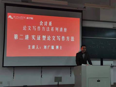 4月28日下午,会计系面向2018级本科生开展的毕业论文写作方法系列讲座第二讲开讲。邀请会计系刘广瑞博士围绕实证型论文的选题、文献综述、研究假设、样本和数据等内容详细介绍了实证研究的基本理论和具体步骤。通过讲座,大家对实证研究方法及其运用有了更深刻的理解,为今后应用这一研究方法进行毕业论文写作研究奠定良好的基础。