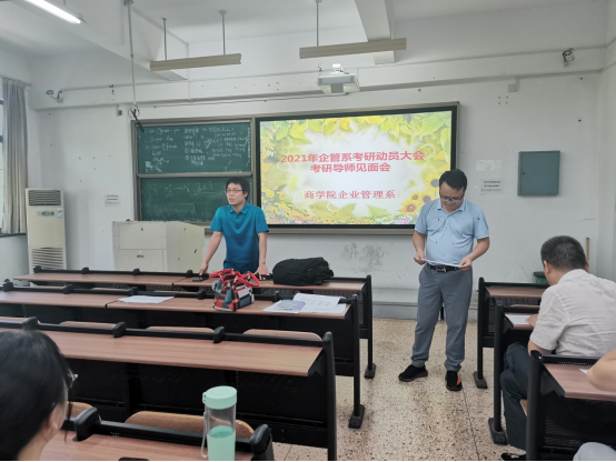 为更好地激发企业管理系18级同学的考研积极性、帮助大家坚定考研决心,6月23日下午,企业管理系组织工商管理及国际商务2018级考研学生开展了考研动员会和考研导师见面会。学院领导高度重视企业管理系考研工作,周鸿勇院长、丁志刚副院长百忙之中亲自担任考研导师,并积极参与本次考研动员会及考研导师见面会。