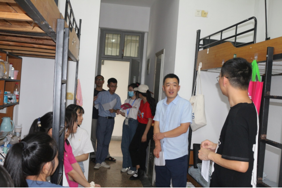 副院长丁志刚来到了工商管理专业新生们的寝室进行走访,关切询问了同学们的入住情况、到校感受,细心叮嘱同学们注意身体防止中暑,并鼓励同学们尽快融入大学生活,激励同学们要把握发展机遇,提前做好人生规划,树立目标找准方向,夯实专业基础,不断提升自我价值、锤炼本领。