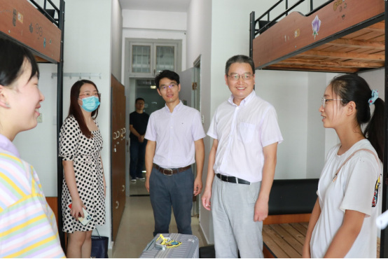 9月5日新生报到当天,yl23455永利官网院长周鸿勇,院党委副书记(主持工作)史正东,副院长丁志刚,院党委副书记兼纪委书记周建强,院党委委员、公共管理系书记、主任邵青,在学院辅导员、新生班主任陪同下深入2021级新生寝室走访慰问。