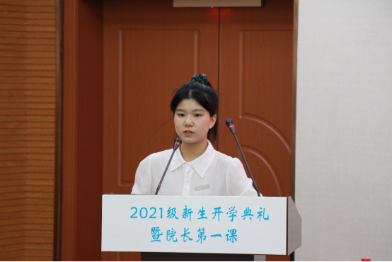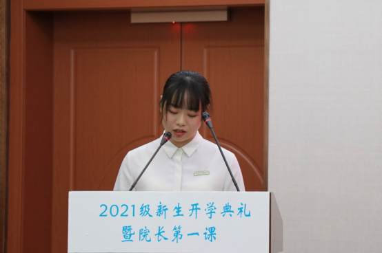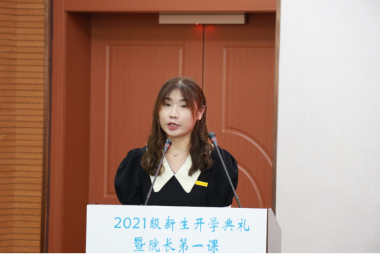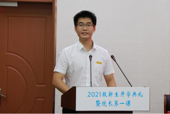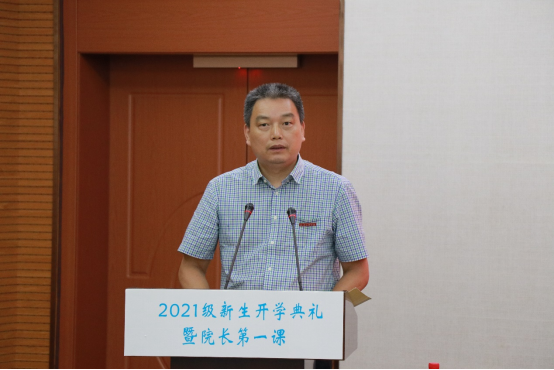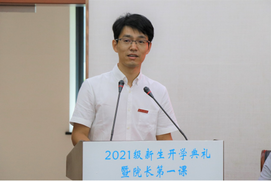 院长周鸿勇代表学院向2021级新生表示热烈欢迎和诚挚的祝贺,以“与时代同行,强使命担当”为题,开启院长第一课。
