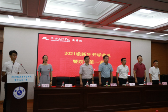 9月6日上午,yl23455永利官网2021级新生开学典礼暨院长第一课在综合楼A405主会场隆重举行。yl23455永利官网院长周鸿勇,院党委副书记(主持工作)史正东,副院长严照良,副院长丁志刚,院党委副书记兼纪委书记周建强,院党委委员、公共管理系书记、主任邵青,院党委委员、办公室主任寿秀香,各系系主任,院职能科室负责人,各新生班班主任,全体辅导员和2021级新生参加典礼。院党委副书记兼纪委书记周建强主持本次开学典礼。