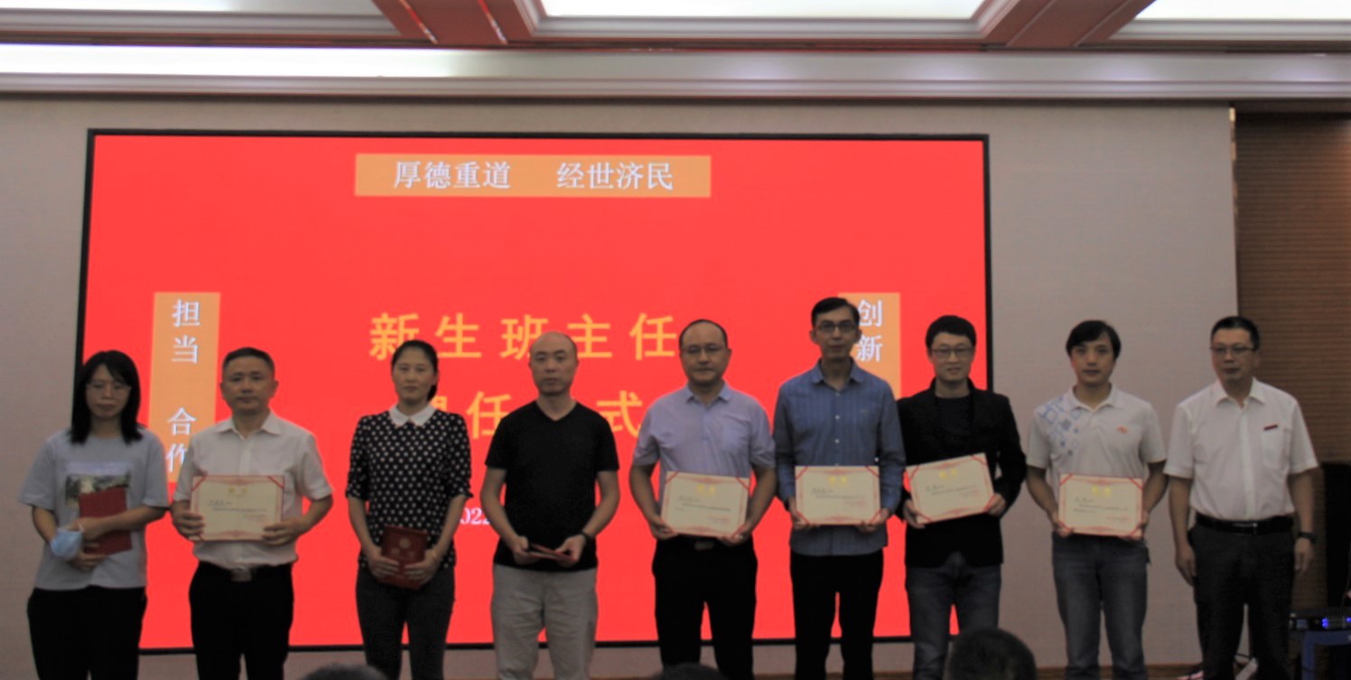 典礼伊始,全体成员奏唱国歌。随后举行新生班班主任聘任仪式,由党委书记陈伟鸿颁发聘书并合影留念。他强调,希望新生能在班主任的带领下,承“厚德重道,经世济民”的院训,在“担当、合作、创新、有为”的院风中成长成才。