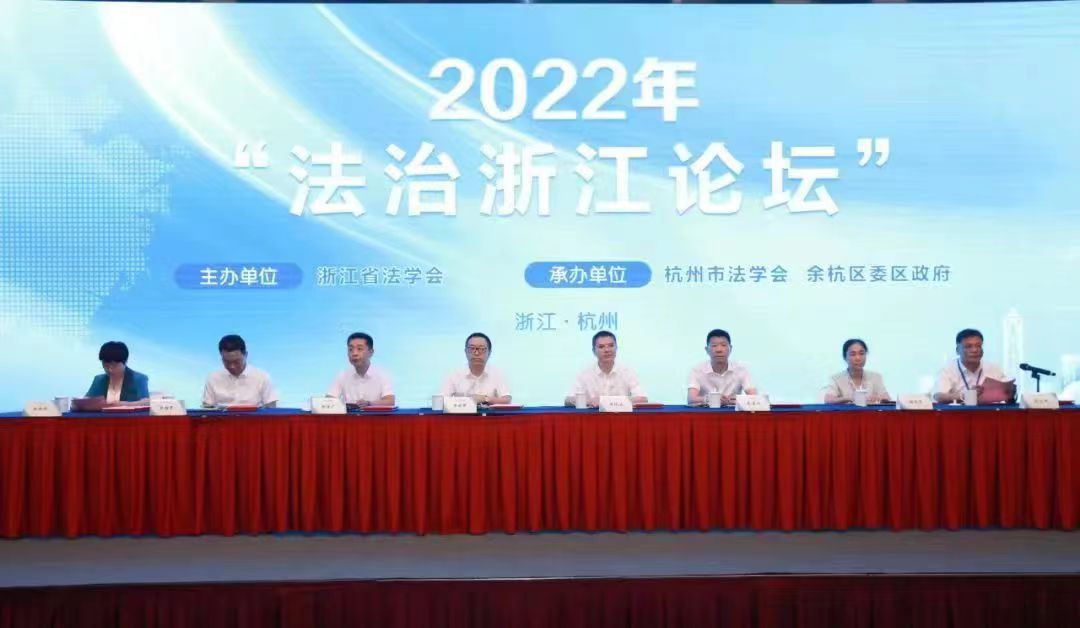 9月23日,以“数字化建设法治保障研究”为主题的2022年“法治浙江论坛”在杭州余杭召开。本次论坛由省法学会主办,杭州市法学会、余杭区委区政府承办。来自省内外各级政法单位和法学院校的专家学者、获奖论文作者代表,以及市县法学会代表近100人参加论坛。
