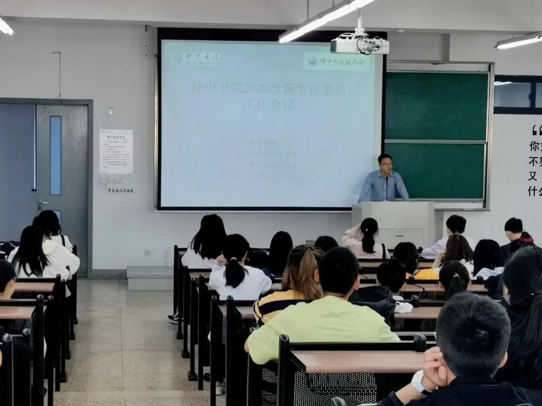 11月18日中午,仲申书院2020级新生寝室长会议于综合楼A406召开。仲申书院辅导员李红星、各楼委会成员以及新生寝室寝室长共同参加了本次会议。会议由书院自管会舍务部部长方梦利主持。