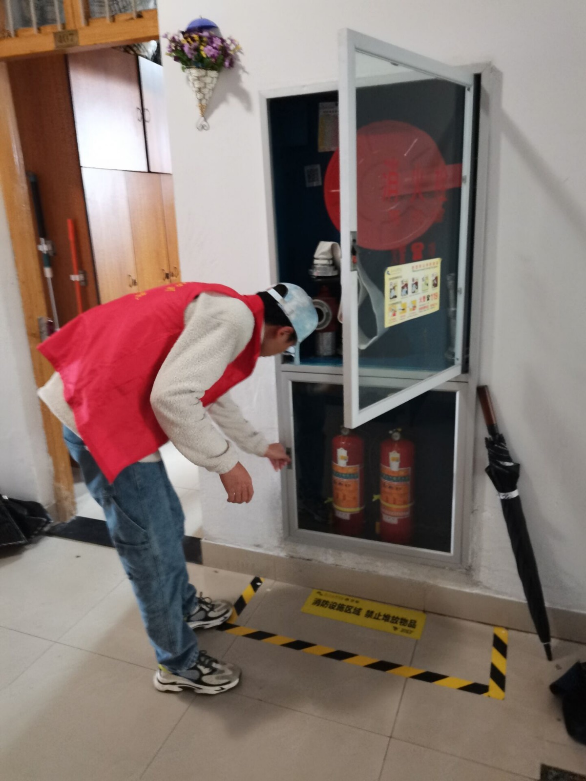 此次重点检查仲申书院宿舍消防箱内灭火器罐体是否存在变形、损伤等缺陷,灭火器是否过期,压力值是否处于正常范围,保险销和铅封是否完好,喷管是否存在老化现象,消防器材配套设施是否齐全,摆放位置是否规范、到位等情况。